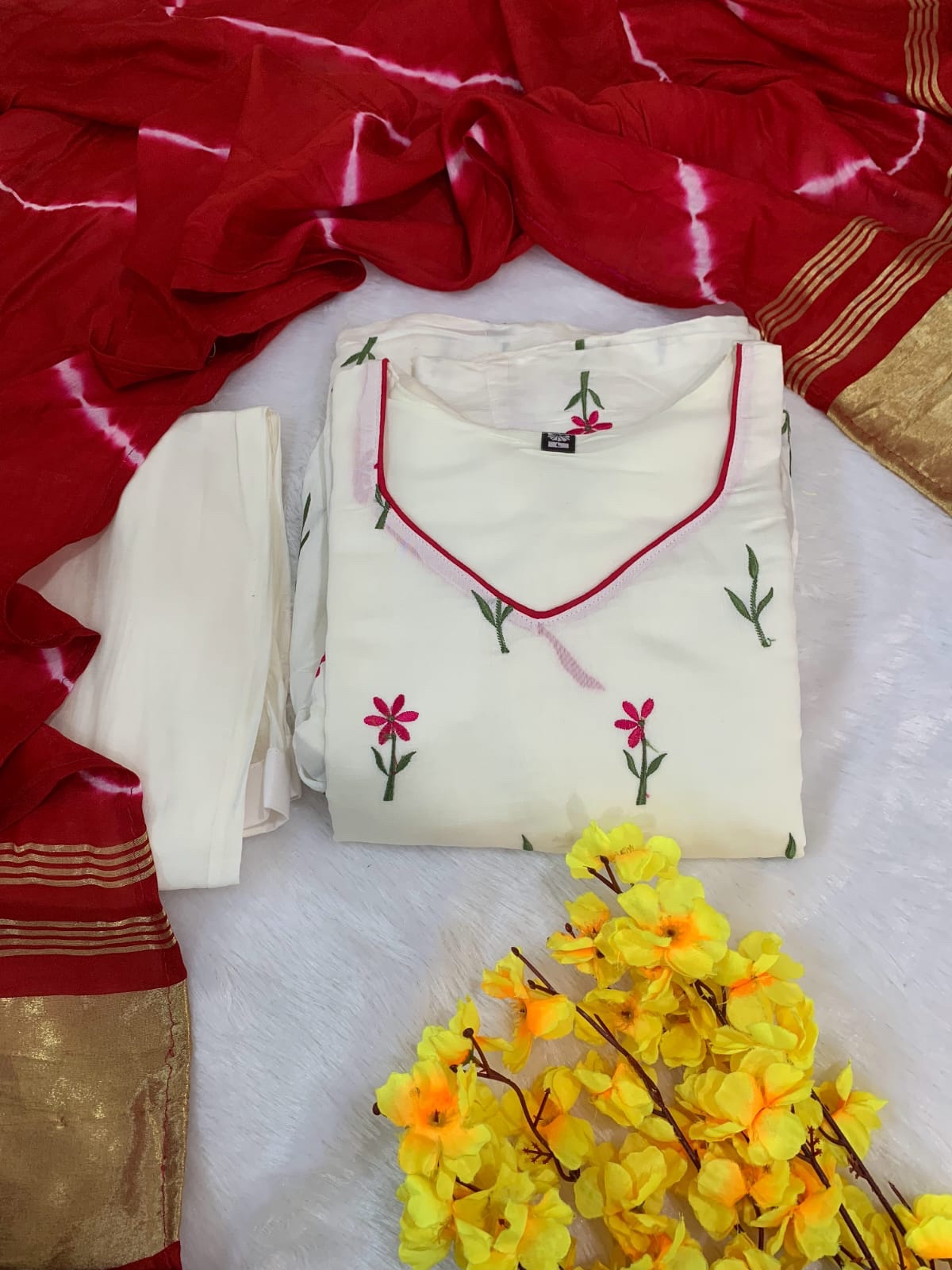 Step into timeless elegance with this exquisite Anarkali flared Chanderi silk kurti set, designed to elevate your look for festive and celebratory occasions. Crafted from premium Chanderi silk, this Anarkali kurti features a beautifully flowing flare that creates a regal and sophisticated silhouette. Intricate detailing on the yoke adds traditional charm, while the soft silk fabric ensures all-day comfort and graceful wear.